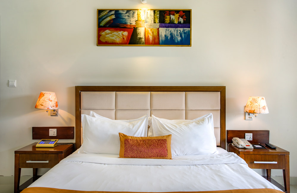 Our Executive Suite with bigger area and articulation of space will give the guests cherish feeling of living at his/her home. A comfortable master bedroom fitted with a living room and kitchenette. These mirrors the warmth of home convenience.